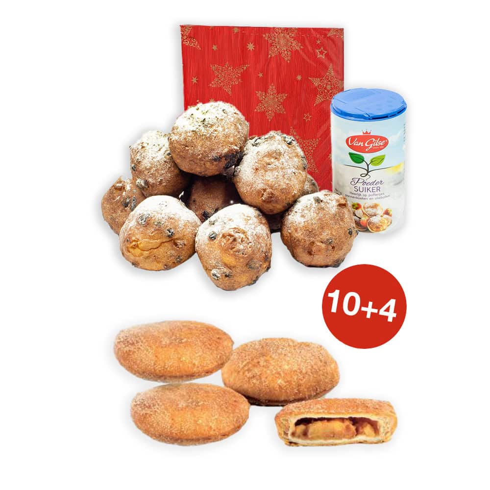 - 10 Oliebollen gevuld met krenten en rozijnen & 4 Appelbeignets