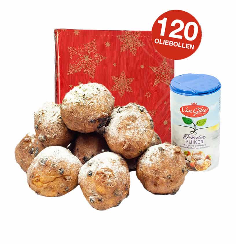 Onze gevulde oliebollen zijn leverbaar in dozen van 10, 20, 30, 40, 50, 60, 120 en 200 stuks (inclusief gratis poedersuiker U kunt ook kiezen voor oliebollen zonder krenten.