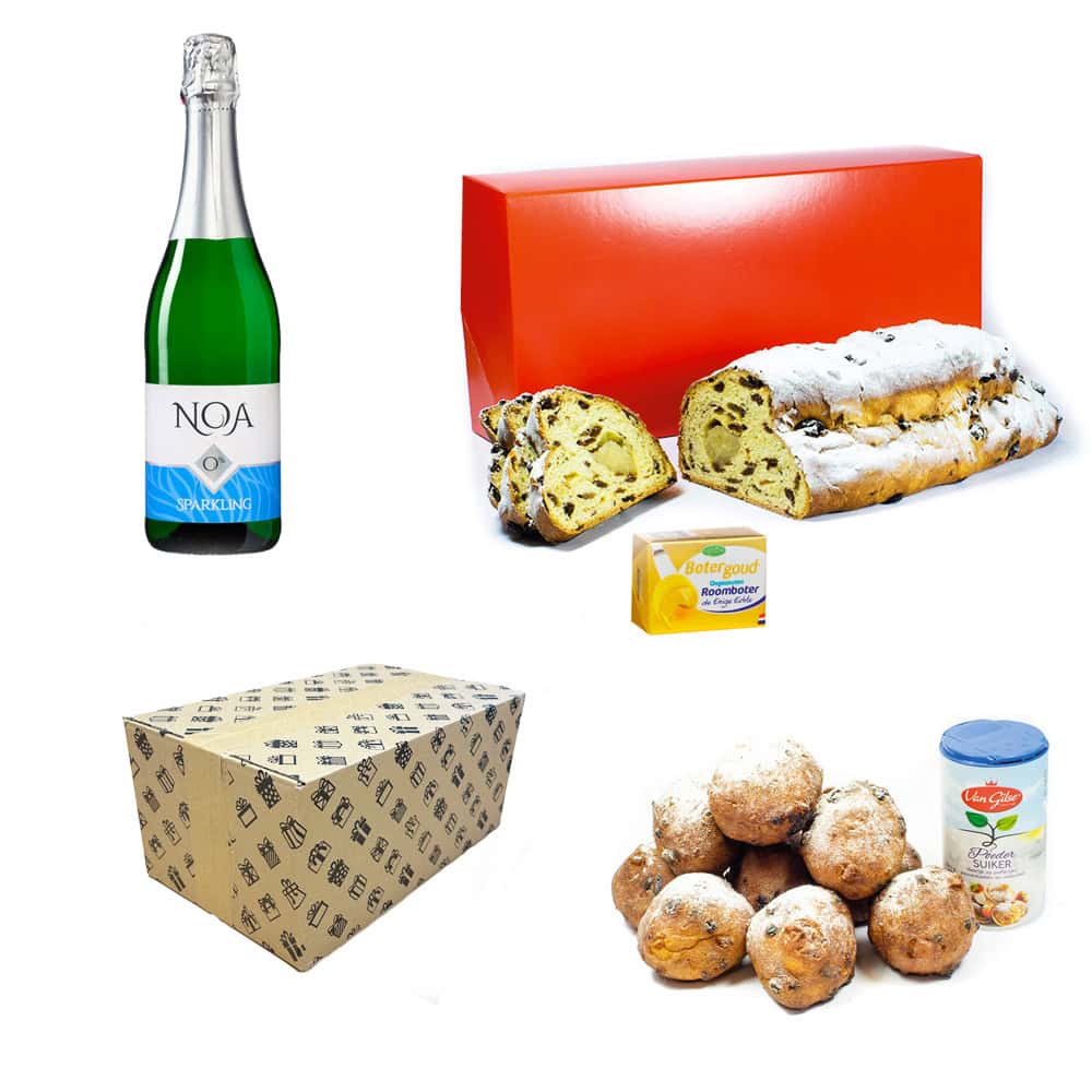 Een leuke verrassing voor oudjaar of nieuwjaar! Deze oudjaarbox is geschikt voor medewerkers, relaties en personeel. Eventueel naar wens uit te breiden met bijvoorbeeld een champagne, vraag een offerte aan voor een vrijblijvende prijsopgaaf. Let op: dit pakket is alcoholvrij. Er is ook een pakket met mousserende wijn.
