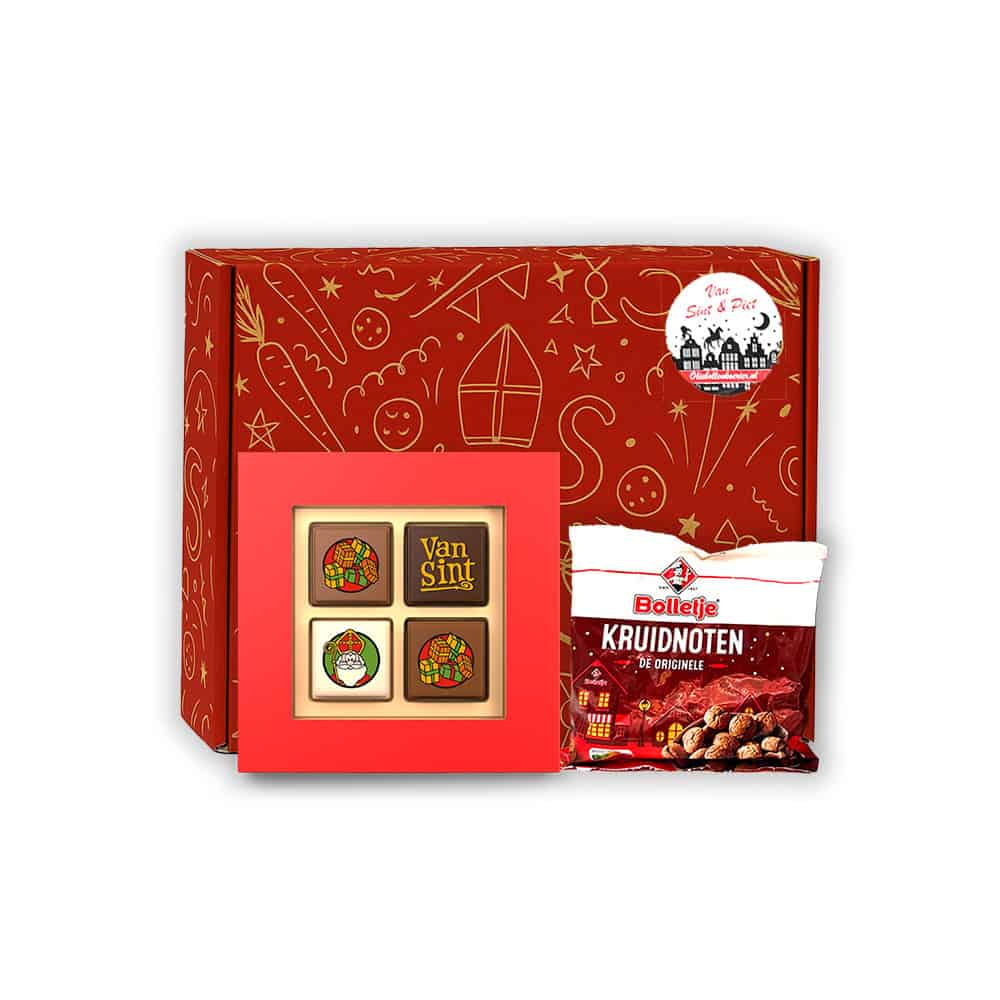 Het pakketje bevat vier smaakvolle Sinterklaas pralines, elk met een heerlijke vulling. De vier pralines zijn er in de smaak wit met een praline vulling van karamel crunch, en de melk variant met een praline vulling van espresso en puur praline hazelnoot. (65 gram). Voor een smakelijk sinterklaasgeschenk.